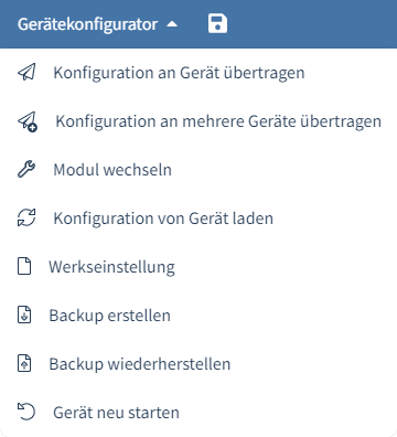 Wählen Sie im Dropdown-Menü des Gerätekonfigurators eine Aktion.