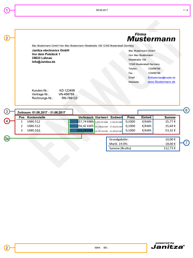 | 1 | Kopfzeile (Konfiguration im 7. Schritt des Assistenten)Je nach aktiviertem Parameter erscheint in diesem Bereich
