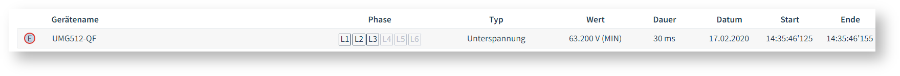 | 1 | Die Kopfzeile listet alle Eigenschaften des analysierten Elements auf. Die gezeigten Eigenschaften unterscheiden sich für Ereignisse und Transienten. |