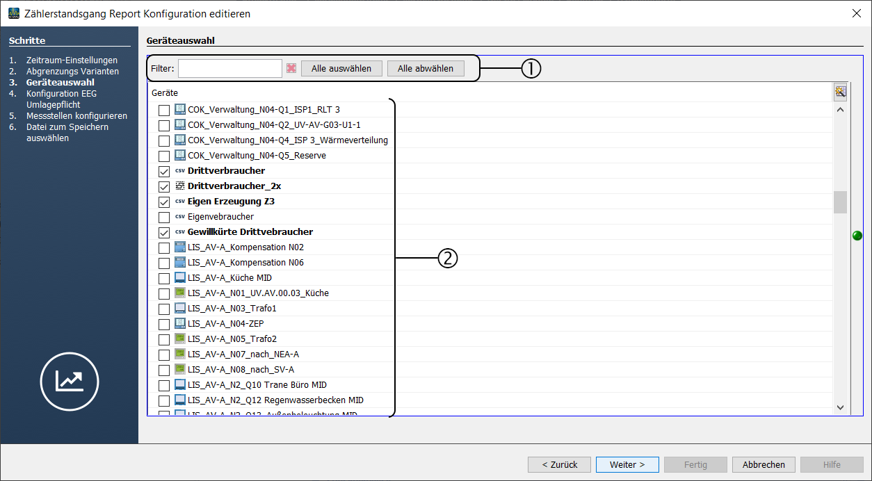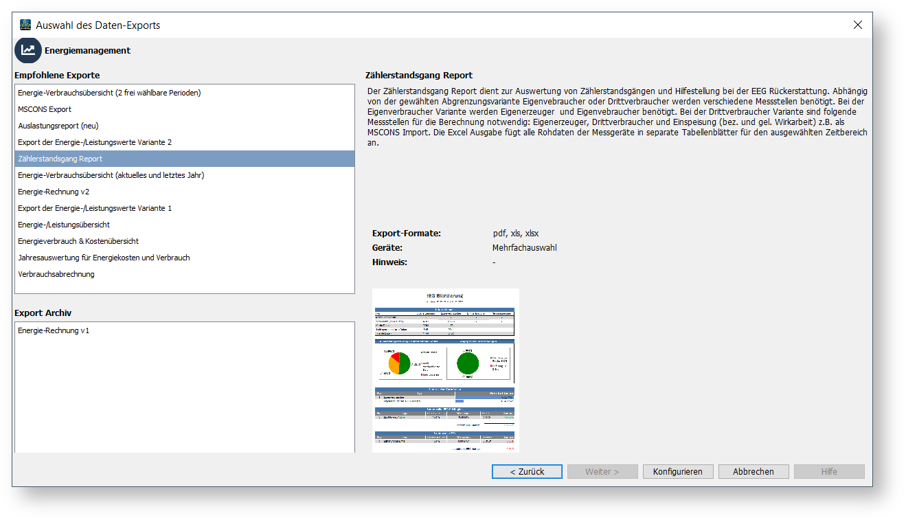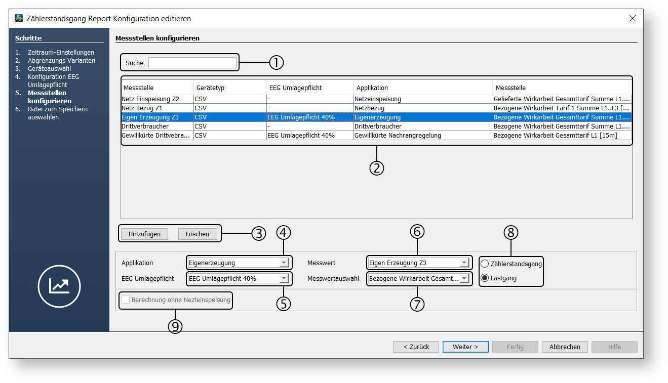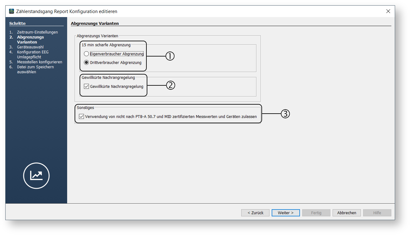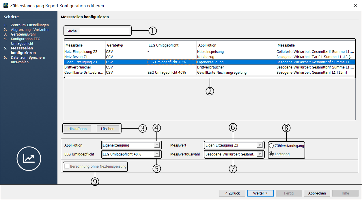 Abhängig von Ihrem Messkonzept (z. B. Eigenverbraucher- oder Drittverbraucher-Abgrenzung) sind nicht immer alle Einträge wählbar. |