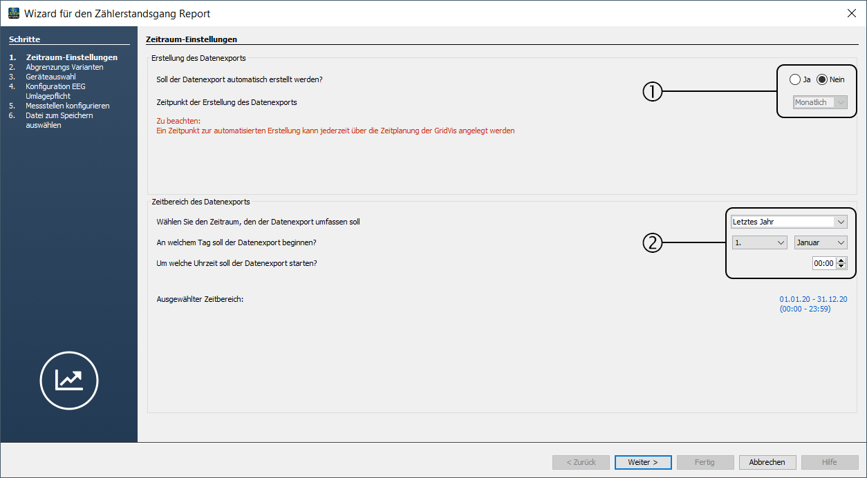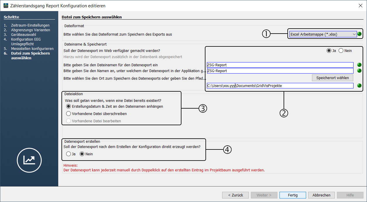 Um einen ZSG-Report erzeugen zu können, muss in der GridVis ein entsprechender Datenexport konfiguriert werden.