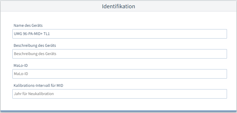 Zur eindeutigen Unterscheidung eines Gerätes geben Sie einen Namen ein (max. 127 Zeichen). Der Name wird in der Kopfzeile des Gerätedisplays und in der Software GridVis® angezeigt.