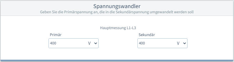 Falls Sie Spannungswandler verwenden, müssen Sie hier das Übersetzungsverhältnis eingeben.