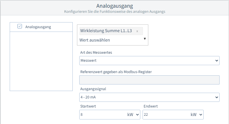 So konfigurieren Sie den Analogausgang: