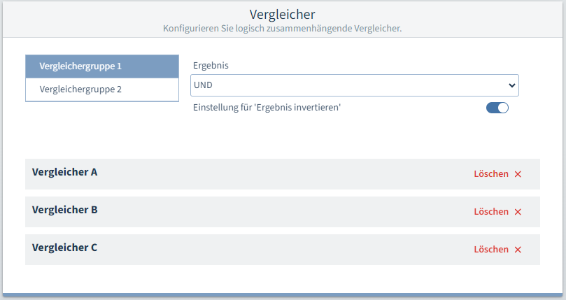 Klicken Sie auf Löschen, wenn Sie einen Vergleicher nicht benötigen. Versehentlich gelöschte Vergleicher können Sie einfach wieder hinzufügen.